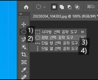 이미지에 원하는 영역을 선택하려면 사각형, 원형, 단일행, 단일열 윤곽도구를